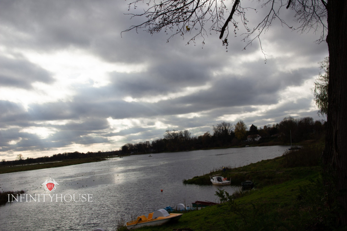 Działka ma kształt rombu bardzo zbliżonego do kwadratu. Jest usytuowana na wzniesieniu/ skarpie z której rozciąga się piękny widok na starorzecze Bugu a w nocy panoramę Warszawy.