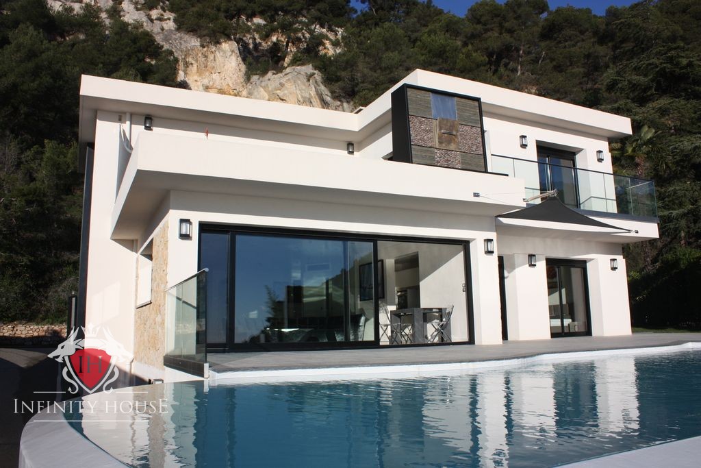 Villefranche-sur-Mer, Nowoczesna Willa z widokiem na lazurowe wybrzeże – marzenie każdego na Francuskiej Riwierze, piękny Kalifornijski styl willi odnowiony w bardzo wysokiej jakości materiałach, niepowtarzalnym widokiem na morze Cap Ferrat a co wiecej z pięknym basenem z widokiem na całe wybrzeże.