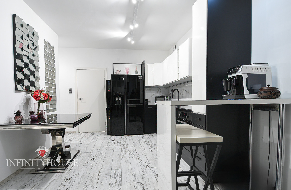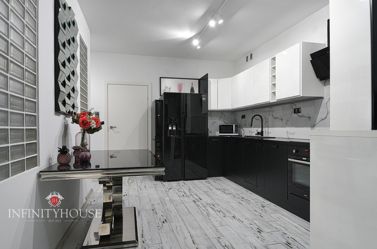 Wyposażenie: meble jak na zdjęciach, TV, system audio, lodówka side by side, lodówka na wino, ekspres do kawy, zmywarka, płyta grzewcza, piekarnik, pralka oraz dwa kominki bio. Dużo miejsca do przechowywania.