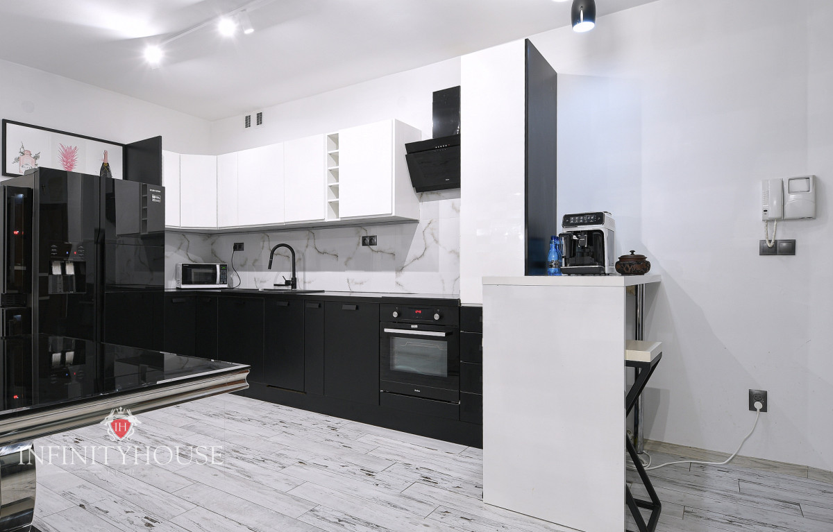 It is ideal for remote workers due to the designated work area. The apartment is bright and well-lit, with windows overlooking a courtyard. The light, cozy interiors in pastel shades and modern furnishings ensure that every day spent here will be a pleasure.